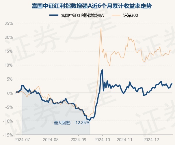 证券之星消息,12月25日,富国中证红利指数增强A最新单位净值为1.044元,累计净值为3.215元,较前一交易日上涨0.38%。历史数据显示该基金近1个月上涨4.19%,近3个月上涨7.19%,近6个月上涨3.37%,近1年上涨12.39%。该基金近6个月的累计收益率走势如下图: