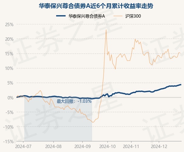 证券之星消息,12月25日,华泰保兴尊合债券A最新单位净值为1.2295元,累计净值为1.4561元,较前一交易日上涨0.04%。历史数据显示该基金近1个月上涨2.48%,近3个月上涨3.89%,近6个月上涨4.31%,近1年上涨8.6%。该基金近6个月的累计收益率走势如下图: