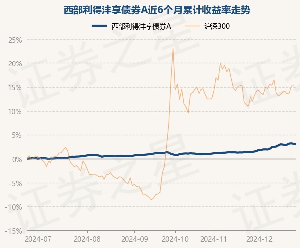证券之星消息,12月25日,西部利得沣享债券A最新单位净值为1.0642元,累计净值为1.0942元,较前一交易日下跌0.08%。历史数据显示该基金近1个月上涨1.58%,近3个月上涨1.62%,近6个月上涨3.01%,近1年上涨6.02%。该基金近6个月的累计收益率走势如下图: