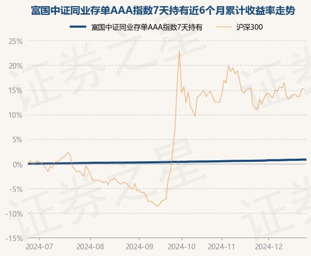 证券之星消息,12月25日,富国中证同业存单AAA指数7天持有最新单位净值为1.0724元,累计净值为1.0724元,较前一交易日下跌0.02%。历史数据显示该基金近1个月上涨0.21%,近3个月上涨0.45%,近6个月上涨0.84%,近1年上涨2.25%。该基金近6个月的累计收益率走势如下图: