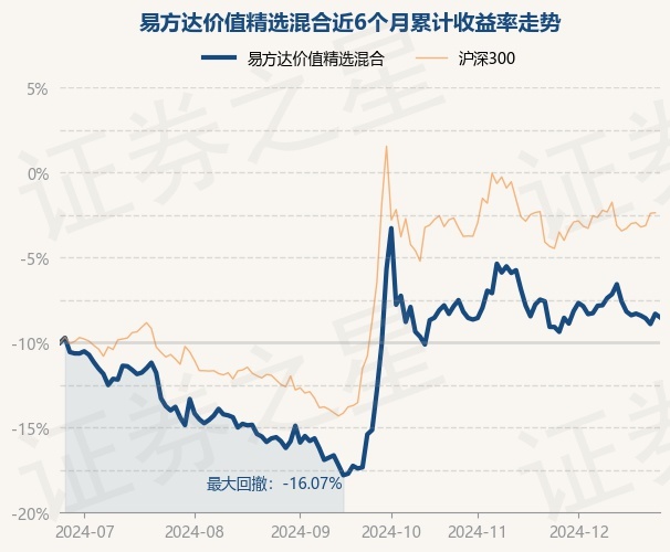 证券之星消息,12月25日,易方达价值精选混合最新单位净值为1.1302元,累计净值为3.8392元,较前一交易日下跌0.4%。历史数据显示该基金近1个月上涨1.12%,近3个月上涨14.78%,近6个月上涨2.97%,近1年上涨7.14%。该基金近6个月的累计收益率走势如下图: