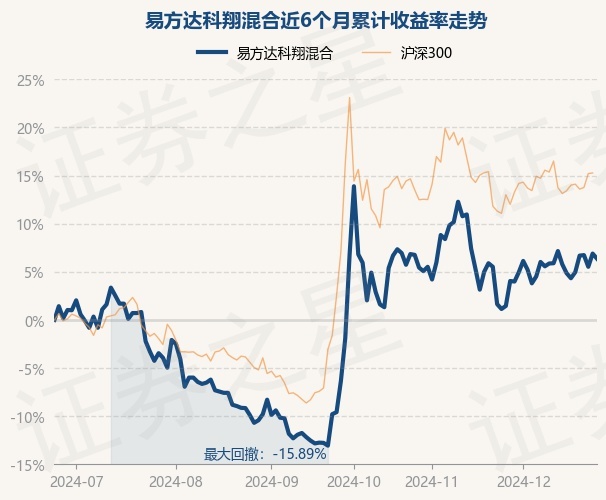 证券之星消息,12月25日,易方达科翔混合最新单位净值为4.029元,累计净值为10.678元,较前一交易日下跌0.49%。历史数据显示该基金近1个月上涨5.17%,近3个月上涨17.64%,近6个月上涨6.36%,近1年上涨2.36%。该基金近6个月的累计收益率走势如下图: