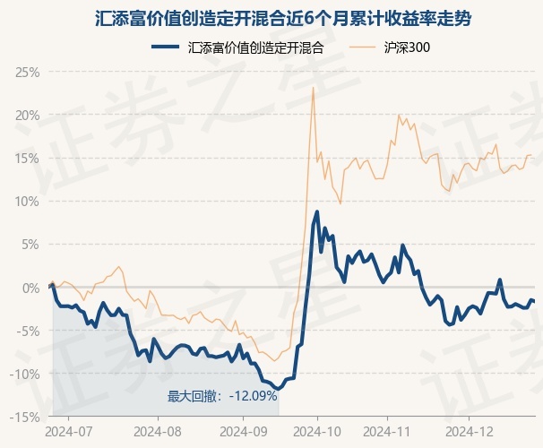证券之星消息,12月25日,汇添富价值创造定开混合最新单位净值为1.2826元,累计净值为1.2826元,较前一交易日下跌0.16%。历史数据显示该基金近1个月上涨2.84%,近3个月上涨5.31%,近6个月下跌1.71%,近1年上涨1.34%。该基金近6个月的累计收益率走势如下图: