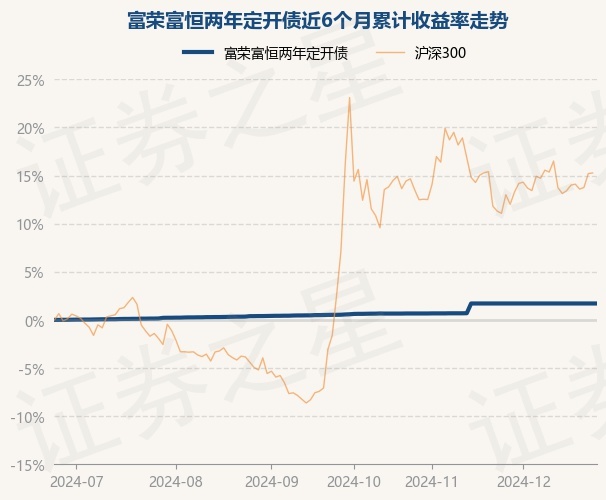 证券之星消息,12月25日,富荣富恒两年定开债最新单位净值为1.0969元,累计净值为1.1294元,较前一交易日上涨0.0%。历史数据显示该基金近1个月上涨0.0%,近3个月上涨1.17%,近6个月上涨1.71%,近1年上涨2.77%。该基金近6个月的累计收益率走势如下图: