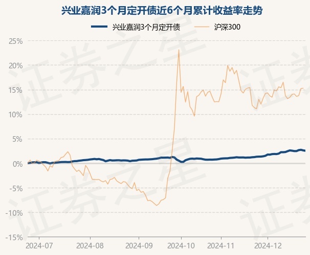 兴业嘉润3个月定开债为债券型-长债基金,根据最新一期基金季报显示,该基金资产配置:无股票类资产,债券占净值比135.66%,现金占净值比0.44%。
