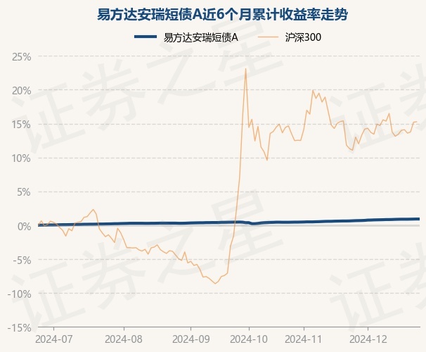 证券之星消息,12月25日,易方达安瑞短债A最新单位净值为1.008元,累计净值为1.169元,较前一交易日上涨0.0%。历史数据显示该基金近1个月上涨0.26%,近3个月上涨0.46%,近6个月上涨0.91%,近1年上涨2.5%。该基金近6个月的累计收益率走势如下图: