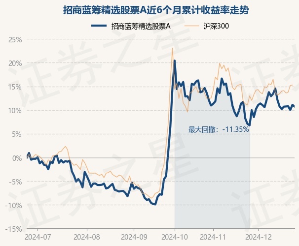 证券之星消息,12月25日,招商蓝筹精选股票A最新单位净值为0.6529元,累计净值为0.6529元,较前一交易日下跌0.31%。历史数据显示该基金近1个月上涨3.42%,近3个月上涨15.33%,近6个月上涨10.75%,近1年上涨11.06%。该基金近6个月的累计收益率走势如下图: