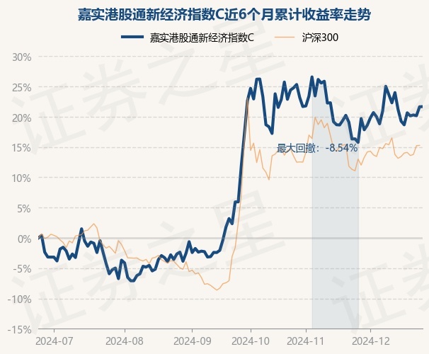 证券之星消息,12月25日,嘉实港股通新经济指数C最新单位净值为0.903元,累计净值为0.903元,较前一交易日上涨0.02%。历史数据显示该基金近1个月上涨4.57%,近3个月上涨14.84%,近6个月上涨21.67%,近1年上涨24.95%。该基金近6个月的累计收益率走势如下图: