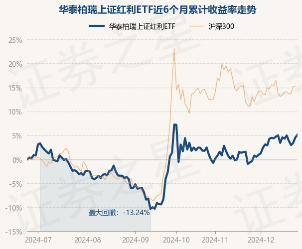 证券之星消息,12月25日,华泰柏瑞上证红利ETF最新单位净值为3.3302元,累计净值为3.0282元,较前一交易日上涨0.52%。历史数据显示该基金近1个月上涨5.81%,近3个月上涨7.98%,近6个月上涨5.11%,近1年上涨18.64%。该基金近6个月的累计收益率走势如下图: