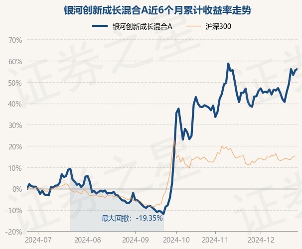 证券之星消息,12月25日,银河创新成长混合A最新单位净值为6.4207元,累计净值为6.4207元,较前一交易日上涨0.35%。历史数据显示该基金近1个月上涨12.36%,近3个月上涨69.29%,近6个月上涨56.17%,近1年上涨46.42%。该基金近6个月的累计收益率走势如下图: