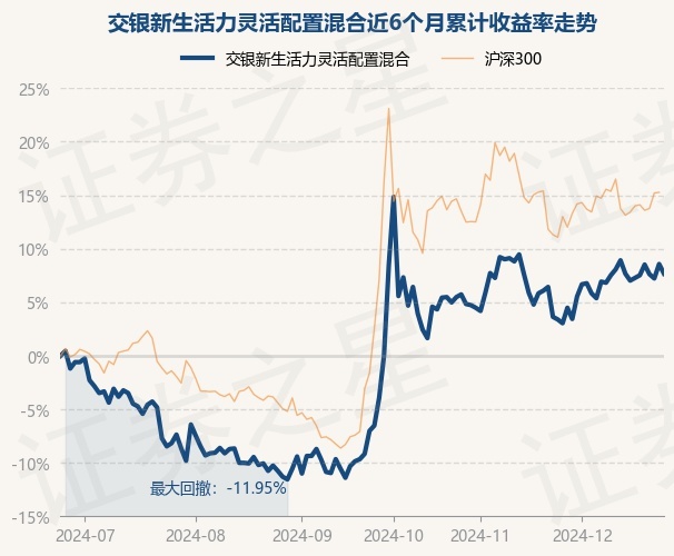 证券之星消息,12月25日,交银新生活力灵活配置混合最新单位净值为2.162元,累计净值为2.162元,较前一交易日下跌0.83%。历史数据显示该基金近1个月上涨4.14%,近3个月上涨15.18%,近6个月上涨7.67%,近1年上涨7.08%。该基金近6个月的累计收益率走势如下图: