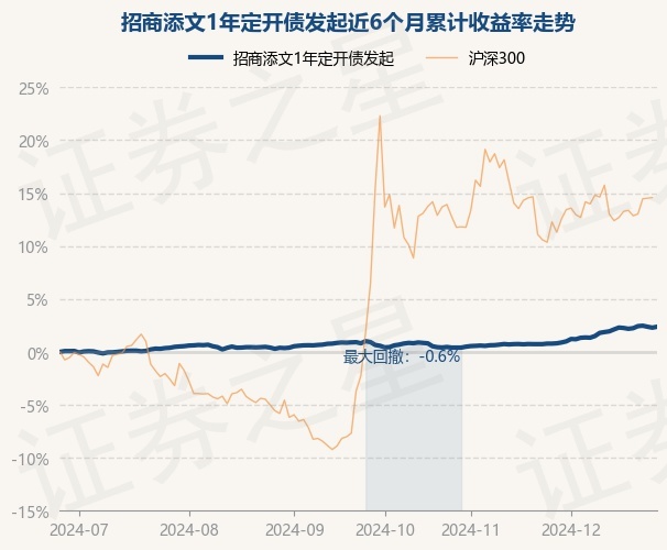 证券之星消息,12月26日,招商添文1年定开债发起最新单位净值为1.0603元,累计净值为1.0603元,较前一交易日上涨0.08%。历史数据显示该基金近1个月上涨1.58%,近3个月上涨1.43%,近6个月上涨2.38%,近1年上涨3.95%。该基金近6个月的累计收益率走势如下图: