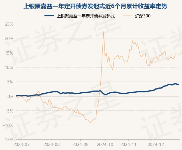 证券之星消息,12月26日,上银聚嘉益一年定开债券发起式最新单位净值为1.0576元,累计净值为1.0954元,较前一交易日上涨0.05%。历史数据显示该基金近1个月上涨2.17%,近3个月上涨2.31%,近6个月上涨4.02%,近1年上涨7.35%。该基金近6个月的累计收益率走势如下图: