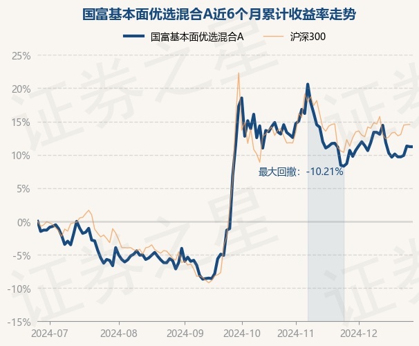 证券之星消息,12月26日,国富基本面优选混合A最新单位净值为1.2807元,累计净值为1.5843元,较前一交易日下跌0.01%。历史数据显示该基金近1个月上涨2.33%,近3个月上涨4.1%,近6个月上涨11.05%,近1年上涨31.56%。该基金近6个月的累计收益率走势如下图: