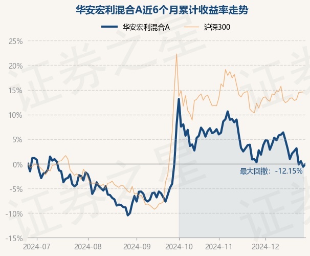 证券之星消息,12月26日,华安宏利混合A最新单位净值为5.0009元,累计净值为5.6209元,较前一交易日上涨0.55%。历史数据显示该基金近1个月下跌0.37%,近3个月上涨4.17%,近6个月下跌0.05%,近1年下跌15.86%。该基金近6个月的累计收益率走势如下图: