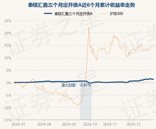 证券之星消息,12月26日,泰信汇鑫三个月定开债A最新单位净值为1.0768元,累计净值为1.0768元,较前一交易日上涨0.03%。历史数据显示该基金近1个月上涨0.88%,近3个月上涨0.81%,近6个月上涨1.36%,近1年上涨3.3%。该基金近6个月的累计收益率走势如下图: