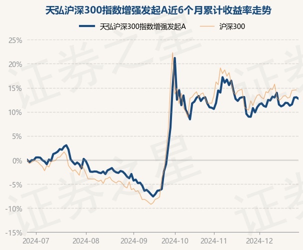 证券之星消息,12月26日,天弘沪深300指数增强发起A最新单位净值为1.2439元,累计净值为1.2439元,较前一交易日下跌0.27%。历史数据显示该基金近1个月上涨3.44%,近3个月上涨9.6%,近6个月上涨12.72%,近1年上涨18.97%。该基金近6个月的累计收益率走势如下图: