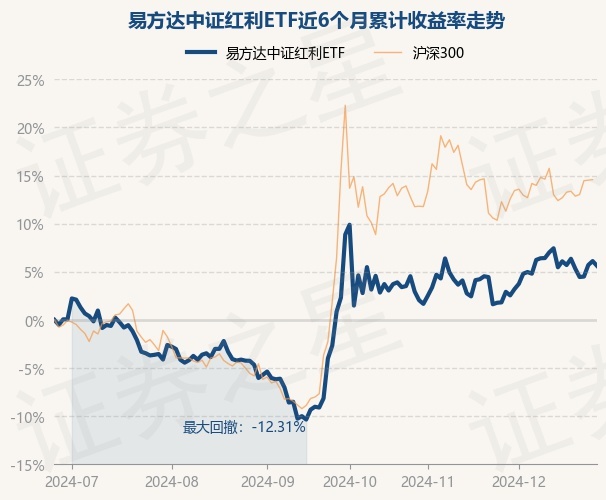 证券之星消息,12月26日,易方达中证红利ETF最新单位净值为1.3667元,累计净值为1.6377元,较前一交易日下跌0.46%。历史数据显示该基金近1个月上涨3.73%,近3个月上涨4.69%,近6个月上涨5.58%,近1年上涨18.06%。该基金近6个月的累计收益率走势如下图:
