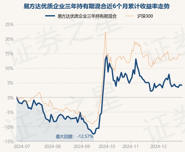 证券之星消息,12月26日,易方达优质企业三年持有期混合最新单位净值为0.8749元,累计净值为0.8749元,较前一交易日下跌0.02%。历史数据显示该基金近1个月上涨1.45%,近3个月上涨3.44%,近6个月上涨4.13%,近1年上涨9.25%。该基金近6个月的累计收益率走势如下图: