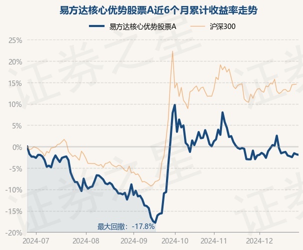 证券之星消息,12月26日,易方达核心优势股票A最新单位净值为0.688元,累计净值为0.688元,较前一交易日下跌0.13%。历史数据显示该基金近1个月上涨1.09%,近3个月上涨2.47%,近6个月下跌1.92%,近1年上涨8.93%。该基金近6个月的累计收益率走势如下图: