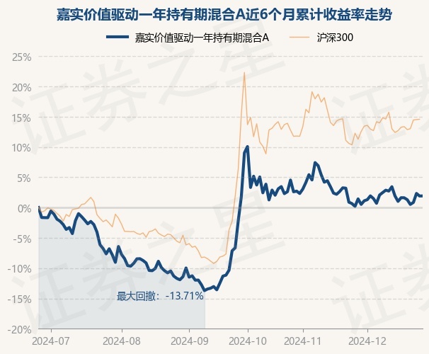 证券之星消息,12月26日,嘉实价值驱动一年持有期混合A最新单位净值为0.9391元,累计净值为0.9391元,较前一交易日上涨0.01%。历史数据显示该基金近1个月上涨1.72%,近3个月上涨4.18%,近6个月上涨1.92%,近1年上涨18.39%。该基金近6个月的累计收益率走势如下图: