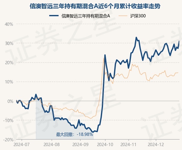证券之星消息,12月26日,信澳智远三年持有期混合A最新单位净值为0.7753元,累计净值为0.7753元,较前一交易日上涨2.87%。历史数据显示该基金近1个月上涨8.66%,近3个月上涨43.52%,近6个月上涨30.87%,近1年上涨15.87%。该基金近6个月的累计收益率走势如下图: