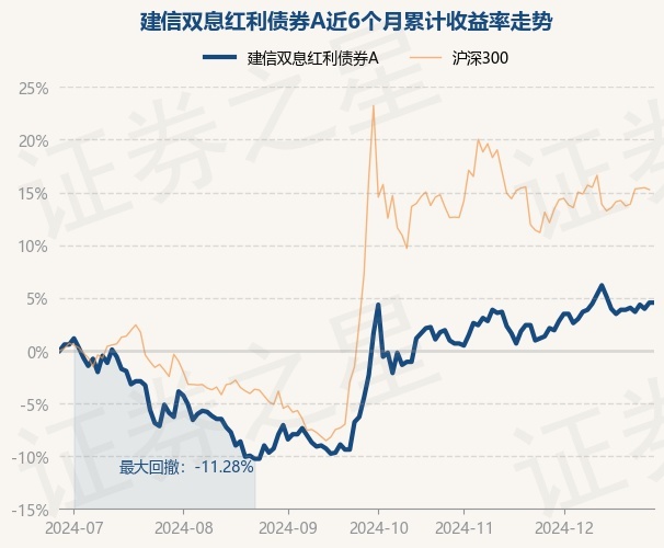 建信双息红利债券A为债券型-混合二级基金,根据最新一期基金季报显示,该基金资产配置:股票占净值比19.31%,债券占净值比82.63%,现金占净值比1.48%。基金十大重仓股如下: