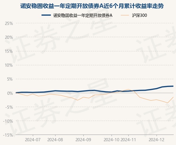 证券之星消息,12月27日,诺安稳固收益一年定期开放债券A最新单位净值为1.0315元,累计净值为1.5393元,较前一交易日上涨0.07%。历史数据显示该基金近1个月上涨1.45%,近3个月上涨1.8%,近6个月上涨2.36%,近1年上涨4.53%。该基金近6个月的累计收益率走势如下图: