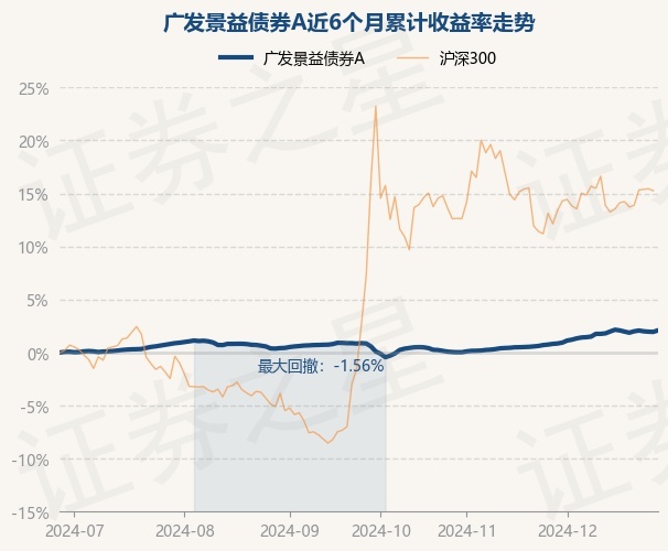 证券之星消息,12月27日,广发景益债券A最新单位净值为1.102元,累计净值为1.102元,较前一交易日上涨0.15%。历史数据显示该基金近1个月上涨1.27%,近3个月上涨1.51%,近6个月上涨2.09%,近1年上涨6.61%。该基金近6个月的累计收益率走势如下图: