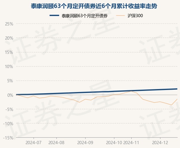 证券之星消息,12月27日,泰康润颐63个月定开债券最新单位净值为1.0691元,累计净值为1.1702元,较前一交易日上涨0.08%。历史数据显示该基金近1个月上涨0.38%,近3个月上涨0.98%,近6个月上涨2.02%,近1年上涨3.95%。该基金近6个月的累计收益率走势如下图: