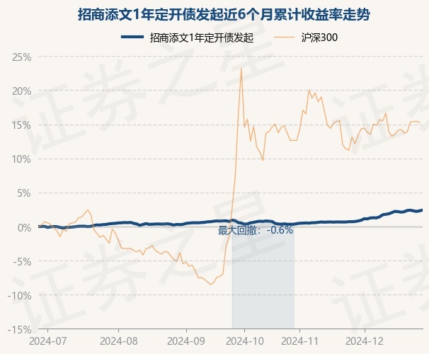 证券之星消息,12月27日,招商添文1年定开债发起最新单位净值为1.0615元,累计净值为1.0615元,较前一交易日上涨0.11%。历史数据显示该基金近1个月上涨1.67%,近3个月上涨1.82%,近6个月上涨2.41%,近1年上涨4.02%。该基金近6个月的累计收益率走势如下图:
