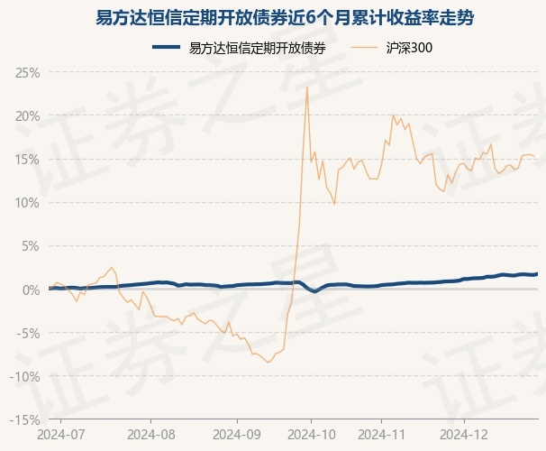 证券之星消息,12月27日,易方达恒信定期开放债券最新单位净值为1.0349元,累计净值为1.2739元,较前一交易日上涨0.11%。历史数据显示该基金近1个月上涨1.33%,近3个月上涨1.22%,近6个月上涨1.68%,近1年上涨4.54%。该基金近6个月的累计收益率走势如下图: