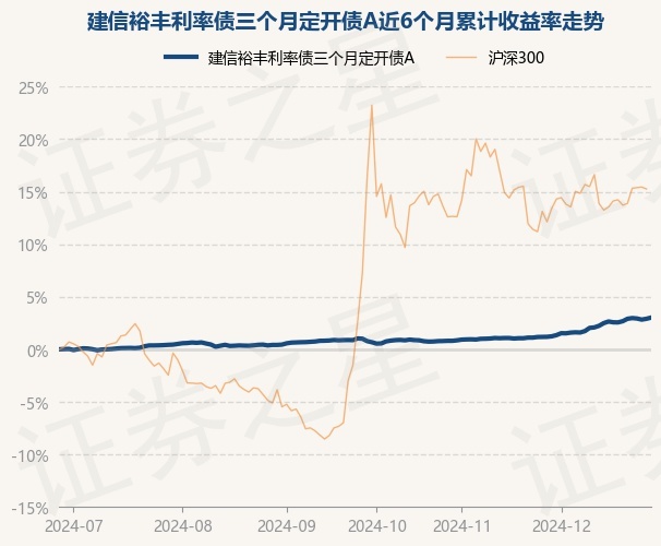 证券之星消息,12月27日,建信裕丰利率债三个月定开债A最新单位净值为1.0814元,累计净值为1.1384元,较前一交易日上涨0.11%。历史数据显示该基金近1个月上涨1.81%,近3个月上涨2.22%,近6个月上涨3.02%,近1年上涨5.68%。该基金近6个月的累计收益率走势如下图: