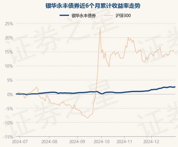 证券之星消息,12月27日,银华永丰债券最新单位净值为1.0458元,累计净值为1.1108元,较前一交易日上涨0.13%。历史数据显示该基金近1个月上涨1.45%,近3个月上涨2.04%,近6个月上涨2.57%,近1年上涨5.4%。该基金近6个月的累计收益率走势如下图: