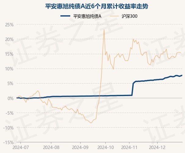 证券之星消息,12月27日,平安惠旭纯债A最新单位净值为1.0753元,累计净值为1.0953元,较前一交易日上涨0.12%。历史数据显示该基金近1个月上涨1.58%,近3个月上涨6.92%,近6个月上涨7.65%,近1年上涨9.21%。该基金近6个月的累计收益率走势如下图: