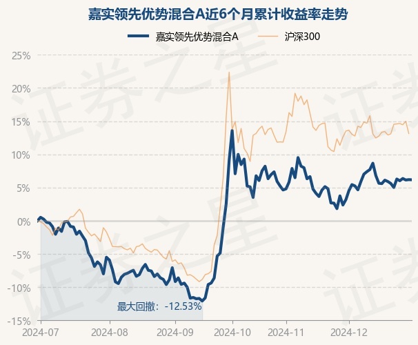 证券之星消息,12月30日,嘉实领先优势混合A最新单位净值为0.9331元,累计净值为0.9331元,较前一交易日上涨0.05%。历史数据显示该基金近1个月上涨2.91%,近3个月下跌2.67%,近6个月上涨6.19%,近1年上涨15.81%。该基金近6个月的累计收益率走势如下图: