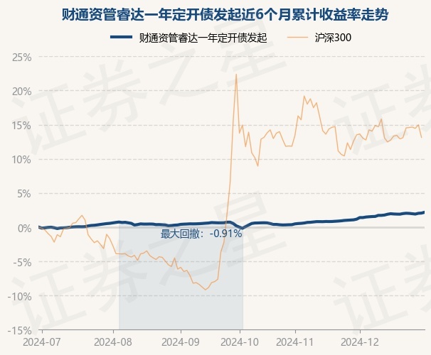 证券之星消息,12月30日,财通资管睿达一年定开债发起最新单位净值为1.015元,累计净值为1.1182元,较前一交易日上涨0.03%。历史数据显示该基金近1个月上涨0.88%,近3个月上涨1.86%,近6个月上涨2.06%,近1年上涨5.95%。该基金近6个月的累计收益率走势如下图: