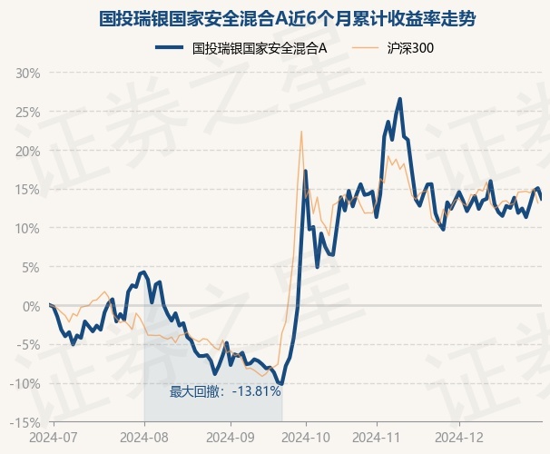 证券之星消息,12月31日,国投瑞银国家安全混合A最新单位净值为1.0744元,累计净值为1.2334元,较前一交易日下跌1.18%。历史数据显示该基金近1个月上涨0.19%,近3个月上涨4.62%,近6个月上涨13.69%,近1年上涨8.97%。该基金近6个月的累计收益率走势如下图: