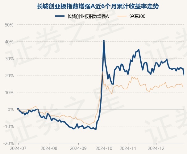 证券之星消息,12月31日,长城创业板指数增强A最新单位净值为1.5749元,累计净值为1.5749元,较前一交易日下跌3.1%。历史数据显示该基金近1个月下跌4.13%,近3个月下跌1.54%,近6个月上涨20.1%,近1年上涨7.65%。该基金近6个月的累计收益率走势如下图: