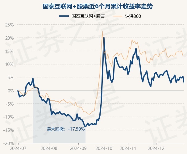 证券之星消息,12月31日,国泰互联网+股票最新单位净值为1.868元,累计净值为2.027元,较前一交易日下跌2.25%。历史数据显示该基金近1个月下跌3.26%,近3个月下跌3.61%,近6个月上涨2.86%,近1年下跌4.35%。该基金近6个月的累计收益率走势如下图: