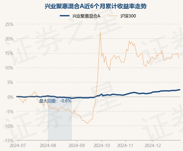 证券之星消息,12月31日,兴业聚惠混合A最新单位净值为1.6016元,累计净值为1.7557元,较前一交易日上涨0.02%。历史数据显示该基金近1个月上涨1.03%,近3个月上涨1.79%,近6个月上涨2.36%,近1年上涨5.95%。该基金近6个月的累计收益率走势如下图: