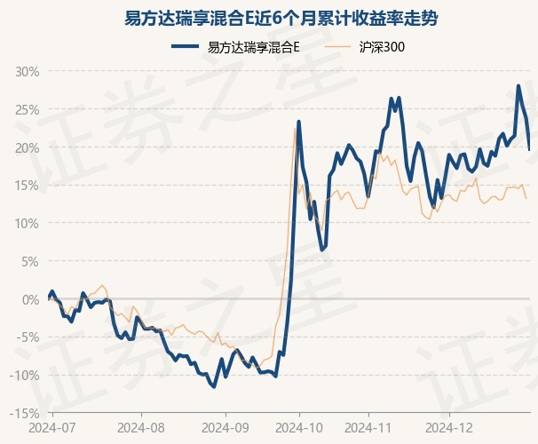 证券之星消息,12月31日,易方达瑞享混合E最新单位净值为2.4421元,累计净值为2.4421元,较前一交易日下跌3.27%。历史数据显示该基金近1个月上涨3.23%,近3个月上涨5.5%,近6个月上涨19.65%,近1年上涨8.25%。该基金近6个月的累计收益率走势如下图: