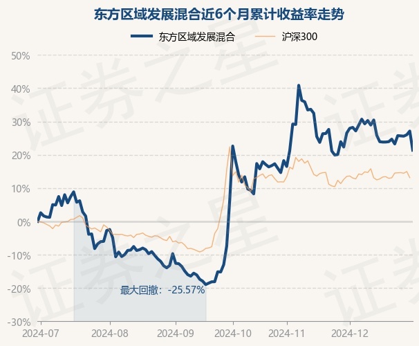 证券之星消息,12月31日,东方区域发展混合最新单位净值为1.2501元,累计净值为1.2501元,较前一交易日下跌4.52%。历史数据显示该基金近1个月下跌4.08%,近3个月上涨14.19%,近6个月上涨21.37%,近1年下跌4.37%。该基金近6个月的累计收益率走势如下图: