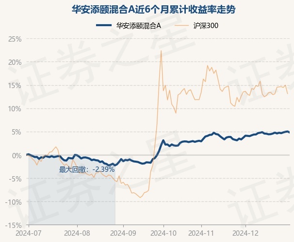 证券之星消息,12月31日,华安添颐混合A最新单位净值为1.2575元,累计净值为1.3214元,较前一交易日下跌0.2%。历史数据显示该基金近1个月上涨1.08%,近3个月上涨2.64%,近6个月上涨4.81%,近1年上涨6.03%。该基金近6个月的累计收益率走势如下图: