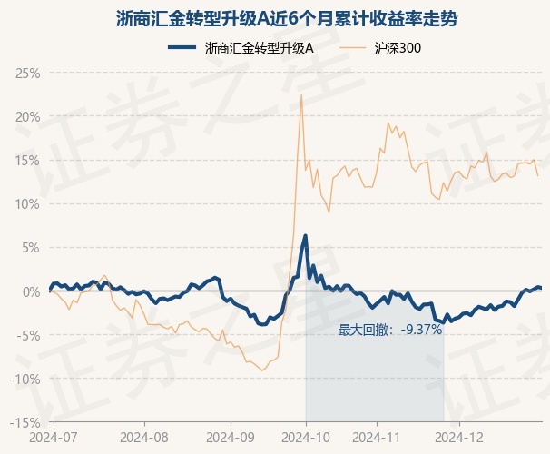 证券之星消息,12月31日,浙商汇金转型升级A最新单位净值为1.0519元,累计净值为1.385元,较前一交易日下跌0.1%。历史数据显示该基金近1个月上涨3.62%,近3个月下跌4.11%,近6个月上涨0.29%,近1年上涨17.01%。该基金近6个月的累计收益率走势如下图: