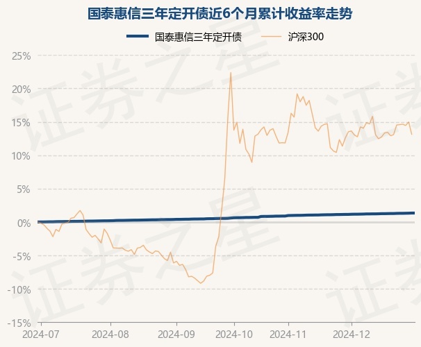 证券之星消息,12月31日,国泰惠信三年定开债最新单位净值为1.0035元,累计净值为1.1394元,较前一交易日上涨0.0%。历史数据显示该基金近1个月上涨0.2%,近3个月上涨0.74%,近6个月上涨1.34%,近1年上涨2.45%。该基金近6个月的累计收益率走势如下图: