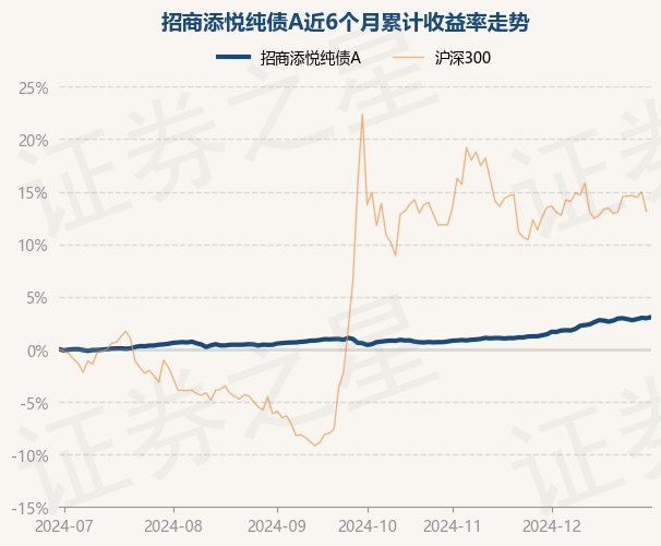 证券之星消息,12月31日,招商添悦纯债A最新单位净值为1.0561元,累计净值为1.2579元,较前一交易日上涨0.1%。历史数据显示该基金近1个月上涨1.61%,近3个月上涨2.47%,近6个月上涨3.07%,近1年上涨5.63%。该基金近6个月的累计收益率走势如下图: