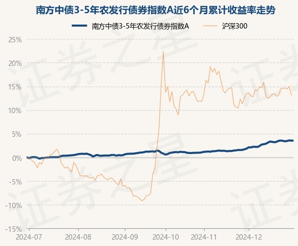 证券之星消息,12月31日,南方中债3-5年农发行债券指数A最新单位净值为1.1125元,累计净值为1.2655元,较前一交易日上涨0.02%。历史数据显示该基金近1个月上涨1.66%,近3个月上涨2.74%,近6个月上涨3.56%,近1年上涨6.85%。该基金近6个月的累计收益率走势如下图: