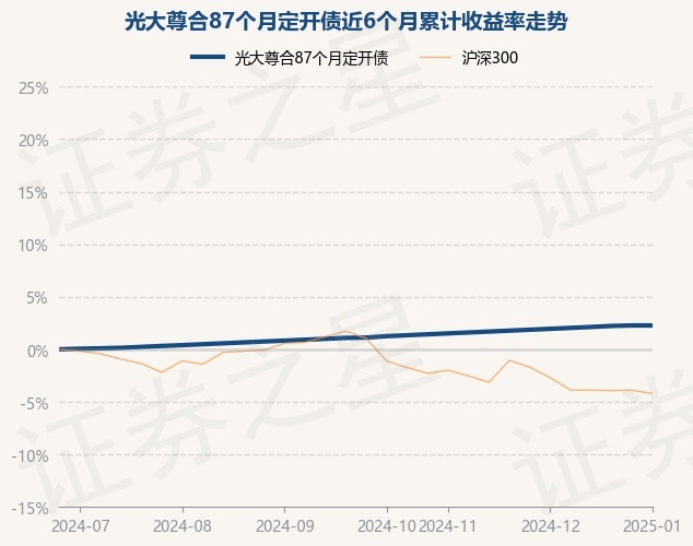 证券之星消息,12月31日,光大尊合87个月定开债最新单位净值为1.0524元,累计净值为1.1885元,较前一交易日上涨0.05%。历史数据显示该基金近1个月上涨0.4%,近3个月上涨1.14%,近6个月上涨2.27%,近1年上涨4.46%。该基金近6个月的累计收益率走势如下图: