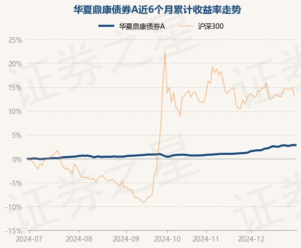 证券之星消息,12月31日,华夏鼎康债券A最新单位净值为1.0442元,累计净值为1.1946元,较前一交易日上涨0.04%。历史数据显示该基金近1个月上涨1.48%,近3个月上涨2.33%,近6个月上涨2.87%,近1年上涨5.39%。该基金近6个月的累计收益率走势如下图: